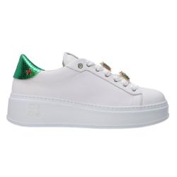 Sneakers Gio Più Combi jewels 24 Verde Donna Pensate per la collezione primavera estate, le nuove sneakers proposte da Gio+ ci regalano ancora una volta un mix di elementi che le contraddistinguono da tutte le altre sneakers.Realizzate interamente in vera pelle, in una moderna struttura dalle linee dinamiche e di tendenza, si presentano decorate da accessori metallici interamente in strass, differenti tra una scarpa e l'altra, e ispirati al mondo animale, con inserti in corrispondenza del tallone a contrasto di colore, su un fondo gommato platform.L'interno è anch'esso realizzato in vera pelle e dotato di comodo plantare anatomico estraibile.Il modello perfetto per la donna dallo stile casual, per completare ogni look giornaliero rimanendo sempre alla moda e al passo con le tendenze.Disponibile nei colori: Argento, Beige, Bianco/Nero, Fucsia, Bianco, Oro, Rosa e Verde.