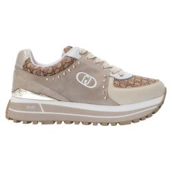 Sneakers Liu Jo Maxi wonder 87 monogram Beige Donna Un'altra sneakers da donna della linea Maxi Wonder di Liu Jo proposta per la nuova collezione primavera estate, glamour e luminosa, perfetta per la donna che ama non passare mai inosservata, da indossare in ogni momento della giornata, per affrontare ogni giorno con stile!Sneakers da donna con tomaia realizzata in suede, accostata a tessuto monogram ed inserti in pelle, dalla stringatura tradizionale con lacci piatti. Il tutto decorato da logo impunturato sulla parte laterale della tomaia e da spoiler laminato con lettering del brand posto sul retro, quest'ultimo presente anche sulla linguetta.Interno realizzato in tessuto con comodo plantare anatomico estraibile, completa il tutto un fondo in gomma con suola platform 4,5 cm a trama antiscivolo con lettering del brand stampato e battistrada dentellato in gomma.Disponibile in colore Beige.