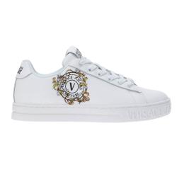 Sneakers Versace FONDO COURT 88 DIS. SK3 Bianco Donna Per la donna appariscente, Versace Jeans Couture ha creato una nuova sneaker appartenente alla linea "Fondo Court 88" della nuova collezione primavera estate. Un modello dallo stile unico e senza tempo, da indossare in ogni attimo di vita quotidiana, per sfoggiare al meglio ogni tuo look!Sneakers da donna con tomaia realizzata in pelle e stringatura tradizionale con lacci in cotone, decorate da maxi logo barocco tipico del brand a contrasto di colore, accessorio passalacci..Interno realizzato in tessuto con comodo plantare anatomico estraibile, il tutto completato da fondo in gomma in tinta unica e suola con trama antiscivolo.Il modello perfetto la donna che ama esprimere una personalità di tendenza e attentta alle mode.Disponibile nei colori nero e bianco.